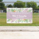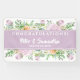Boda de las flores de verano Enhorabuena Cartel diseñado con acuarelas suaves en cúmulos florales de color púrpura, rosa y amarillo, este banner incluye los primeros nombres de novia y de Boda de Groom en texto blanco sobre fondo morado. Para personalizar, simplemente inserte su texto en nuestra plantilla sencilla, reemplazando los nombres de ejemplo y la fecha.