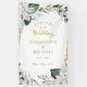Flores blancas elegantes, pancarta boda de oro de eucalipto. Personalizado en minutos. Agregue sus datos y puede seleccionar el tipo de letra, color, tamaño y posición individualmente haciendo clic en "Personalizar más".