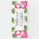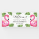 Flamencos rosas, playa, hojas verdes, tropical, elegante, moderno, acuarela verano Boda Banner de bienvenida. Banner de flamencos rosados y rústicos. Perfecto para recién casados. Puedes personalizarlo con los nombres y fechas de la novia y el novio.