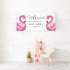 Flamencos rosas, playa, tropical, elegante, moderno, acuarela verano Boda Banner de bienvenida. Banner de flamencos rosados y rústicos. Perfecto para recién casados. Puedes personalizarlo con los nombres y fechas de la novia y el novio.