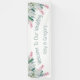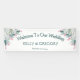 Pancarta Boda de la sabana de verano diseñada con grupos de floral suave color rosa pastel y verde sabio, con texto verde sabio sobre fondo blanco. El texto incluye: Bienvenido a nuestro Boda, y los nombres de la novia y de Groom. Para personalizar, simplemente inserte los Nombres de Novia y Groom en nuestra plantilla fácil, reemplazando el texto de ejemplo. No olvide ver la colección completa de Bodas veraniegos Sage Green Floral para la concordancia entre papel y accesorios.