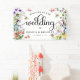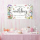 Adorable pancarta de boda con tema de flores silvestres - el diseño presenta una variedad de flores silvestres acuarelas coloridas y adorables abejorros. La plantilla incluye el encantador dicho 'Bienvenidos a la boda de - AGREGAR NOMBRES' con una combinación de fuentes de caligrafía y serif. ¡Perfecto para celebraciones de verano y primavera!