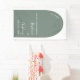 Pancarta de bienvenida en estilo blanco y verde sabio, estilo arco moderno, boda de presupuesto.