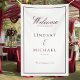 Banner de Boda Elegante Real Blanca y Borgoña con Fuente Escritura, Nombres, Fecha y Texto Personalizados.