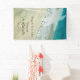 La bonita pancarta de Boda en Playa Tropical se verá genial en el coche de los recién casados o como un letrero para dar la bienvenida y dirigir a sus invitados a su ceremonia de matrimonio y recepción en destino de isla. Esta señal de pancarta de boda personalizada con tema de trópicos presenta una fotografía de la naturaleza de un océano azul turquesa acuático y playa de arena con una palmera blanca y remolinos teñidos adornando la esquina y las palabras Felices para Siempre.