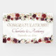 Este audaz Banner colgante de la recepción de la Boda Floral Profunda de Borgoña está diseñado con flores brillantes en tonos burdeos y taupe con toques de ramas verdes claras y oscuras. El texto del guión, tanto en burdeos como en taupe, incluye el texto: ¡FELICITACIONES!, los primeros nombres y fecha de Boda de Bride & Groom, en un suave fondo blanco.Para personalizar, simplemente utilice nuestra plantilla fácil para reemplazar el texto del ejemplo con sus detalles. Para esta Colección de Bodas Florales Profundas de Borgoña hay disponibles tarjetas de accesorio coincidentes. ¡Disfrútalo!