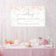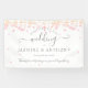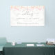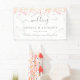 Una bonita flor de primavera cae sobre la información de su día especial de boda colocada en tipografía elegante y chic en este banner de bienvenida de boda romántico y campestre. Diseñado por Thisisnotme©