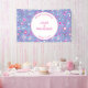 Moderno patrón de flores silvestres botánicas rosadas y blancas pintadas a mano sobre un fondo azul peringuil para un fresco y feliz aspecto de verano. Un magnífico cartel de boda para recibir a sus invitados en el gran día.