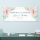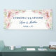 Añada este elegante Banner colgante floral de rosas rosadas Rubor a sus accesorios de recepción de boda. Diseñado con elegantes flores de rosa sobre un fondo blanco, con letras de la marina. El texto incluye: FELICITACIONES, los primeros nombres de The Bride y Groom y la fecha de Boda. Para personalizar, simplemente inserte sus detalles en nuestra plantilla sencilla, reemplazando el texto de ejemplo. No olvide ver toda la colección Soft Rubor Pink Roses Elegant Wedding para encontrar artículos de escritorio y accesorios a juego.