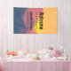 Bienvenido a nuestra pancarta boda con un ilustracion gráfico con muchas cumbres montañosas con luz amarillo brillante detrás de las montañas. Fabricado con formas geométricas poligonales.Diseño minimalista simple. Los colores van desde el azul oscuro hasta el rojo desierto.