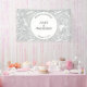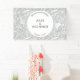 Bonito, elegantes siluetas botánicas florales de naturaleza, follaje blanco, hojas y flores sobre un fondo gris plateado. Un magnífico cartel de boda para recibir a sus invitados en el gran día.