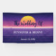Esta pancarta boda retro de los años 80 tiene arte de sintonización fresco y violeta y una puesta de sol sobre las líneas de neón. Esta impresionante decoración boda temática de los años 80 es atrevida y divertida, seguro que atrapará la atención de todos y les dirá que estás tirando a un fiesta de baile.