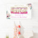 Banner de la fiesta de primer cumpleaños diseñado por un chica y diseñado por un personalizado que presenta el diseño de caligrafía "She's a Wild One" con pincel purpurina dorado y ramo de flores de boho acuarela de color boho.