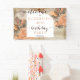 Brillante acuarela seca terracota hidrangeas y hojas de palma floral "fiesta de cumpleaños" diseño "bienvenida". Diseño compuesto por Holiday Hearts Designs (derechos reservados).