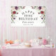Banner de la fiesta de cumpleaños floral de una acuarela femenina con ramos de esquina de boho floral en una elegante combinación de colores: rojo borgoña, rosa rubí, violeta de ciruela y durazno con suntuosas zonas verdes dispersas por todas partes. Es una elección maravillosa para celebraciones desde mediados de verano, otoño y durante los meses de invierno. Personalice este cartel con el nombre del invitado de honor y la fecha de cumpleaños. Se muestra aquí celebrando un cumpleaños número 100, puede personalizar la edad a cualquier edad.