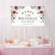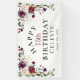 Celebrar un cumpleaños número 75 con una bandera de fiesta de cumpleaños floral de color agua femenina. Este diseño tiene ramos de esquina de boho floral únicos en la elegante combinación de colores: rojo borgoña, rosa rubor, púrpura de ciruela y melocotón con vegetación. Es una elección maravillosa para celebraciones desde mediados de verano, otoño y durante los meses de invierno. Personalice este cartel con el nombre del invitado de honor y la fecha de cumpleaños. Se muestra aquí celebrando un cumpleaños número 75, puede personalizar la edad a cualquier edad.