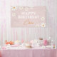 Lona Boho Retro Pink Daisy Floral Feliz cumpleaños