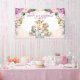 Pancarta fiesta adorable con temática de la jungla con bonitos animales de safari y elegante vegetación tropical acuática y flores de color rubio y violeta. Artículos coincidentes disponibles en nuestra tienda!