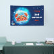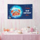 Banner de fiesta de cumpleaños para una piscina, parque acuático, playa, verano 2 o cualquier fiesta de cumpleaños para niños con un adorable cangrejo feliz con fondo azul marino. Personaliza fácilmente el texto y disfruta de tu celebración de verano :) - Kate Eden Art