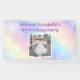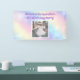 Celebra el cumpleaños de tu niñita con esta pancarta de bienvenida fiesta brillante de arcoiris pastel que incluye hermosas letras moradas y la fotografía del personalizado de tu hijo. Esta decoración mágica ejemplifica el encanto de la infancia. Añada la fotografía de su hijo para darle un toque personal a esta bonita y caprichosa decoración fiesta.