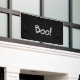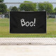 Boo blanco y negro gracioso lindo tipografía manuscrita simple pancarta de decoración de Halloween, cartel. Texto blanco, fondo negro sólido.