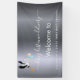 Para un paseo a través de una ducha de bebé celebrando a un niño. Un falso fondo metálico plateado. Con una linda cigüeña voladora sosteniendo a un bebé. Personalice y agregue el nombre de la futura madre. Con el texto "Entrega a larga distancia" y "Bienvenidos a". La entrega a larga distancia está escrita con un guión moderno y moderno con letras a mano con chispas. Letras blancas. Sencillo, minimalista y de diseño.