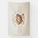 This artwork features a watercolor style basket containing a variety of breads and a few stalks of wheat, on a two toned, textured background.