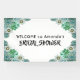 Una ducha de bebé para un chica o un niño, sin diferencias de género. Decorada con plantas suculentas de color verde acuático, cactus, flores de cactus sobre un elegante fondo blanco. Flores de plata, verde y gris. Con el texto: Bienvenida y ducha de novias. Plantilla para el nombre de la novia. Cartas negras.