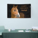 Caballo de cuarto marrón en la pancarta del personalizado negro "Cumpleaños Feliz". Personalice agregando su nombre. Póngase en contacto con nosotros para obtener ayuda sobre la personalización o para solicitar productos de correspondencia o coordinación.