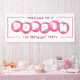 Bienvenido a sus huéspedes fiestas con estilo con este banner de Poppin fiesta de primer cumpleaños. Este bonito diseño cuenta con bolas de bubblegum rosadas adornadas con letras audaces y burbujeantes que se ajustan perfectamente al capricho del tema. Es divertido y lindo, y una gran adición a la celebración del primer hito de una niña.