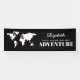 Banner de mochilero de Bon voyage con fondo negro que se puede cambiar a cualquier color, un mapa del mundo, pushpins añadidos a diferentes destinos y una plantilla de buena suerte. Haga clic en el botón "personalizar" para una mayor personalización, incluyendo el traslado de los pines a los países deseados.