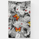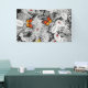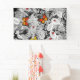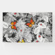 Escena de arte digital en la naturaleza de primavera con mariposas y ladybugs sobre un fondo de naturaleza blanca y negra.