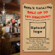 ¡Feliz Día de San Patricio! Otra festividad para celebrar este mes de marzo y para anunciar también su negocio o para promocionar su marca. El verde es siempre el color para estas vacaciones, pero también prueba otros colores. Banner marrón claro de personalizable con Saint Patrick Sale, su nombre de negocio y otra información. Este puede ser el color que coincida con el esquema de color de su empresa. Cartel que se puede usar como material de marketing para atraer más clientes. Personalizar y muéstralo para convencer a más clientes de que compren sus productos o clientes para que les gusten sus servicios. Los contenidos son Feliz Día de San Patricio, venta de textos con un porcentaje de descuento que ofrecerás, fechas de venta, tu nombre de negocio, logotipo, dirección, número de teléfono, correo electrónico y sitio web o tu página de medios sociales de negocios. Compruebe la apariencia después de cargar el logotipo y escribir textos. Si la apariencia le resulta agradable, puede realizar su pedido ahora. Si necesita cambiar el tamaño y mover el logotipo y los textos para que encajen en este cartel o en el tamaño que elija, por favor cambie la herramienta de diseño. También puede cambiar el color de fondo, el color de fuente y el estilo de fuente en la herramienta de diseño. Le deseamos la mejor de las suertes, alegría y más ventas de esta fiesta.