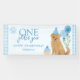 Celebra el gran hito de tu pequeño con este adorable banner de cumpleaños “Un Año Dorado” que presenta un cachorro de retriever dorado con un sombrero de fiesta, pastelitos, globos y acentos de gingham azul. Perfecto para un primer cumpleaños, este banner hace una declaración dulce y festiva detrás de la mesa de postres o en la entrada de la fiesta. ¡Personaliza con el nombre de tu hijo para un detalle de fiesta emotivo y listo para fotos!