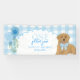 Celebra el año dorado de tu pequeño con esta adorable pancarta de cumpleaños "Un año dorado". Con un dulce cachorro de retriever dorado que lleva un lazo de gingham azul, un marco blanco festoneado y un fondo a cuadros azul suave, esta pancarta personalizada de primer cumpleaños añade el toque final perfecto a tu celebración.