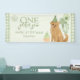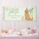 Celebra el gran hito de tu pequeño con esta adorable pancarta de cumpleaños “Un Año Dorado” que presenta a un cachorro de retriever dorado con un sombrero de fiesta, pastelitos, globos y acentos de gingham verde. Perfecta para un primer cumpleaños, esta pancarta hace una declaración dulce y festiva detrás de la mesa de postres o en la entrada de la fiesta. ¡Personaliza con el nombre de tu hijo para un detalle de fiesta emotivo y listo para fotos!