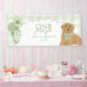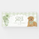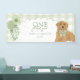 Celebra el año dorado de tu pequeño con esta encantadora pancarta de cumpleaños "Un año dorado". Con un feliz cachorro de golden retriever con un lazo de gingham verde, un fondo a cuadros verde suave y globos con huellas de patas juguetonas, esta pancarta personalizada de primer cumpleaños aporta el toque más dulce a tu celebración.
