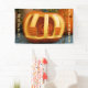 ¡Esta imagen tallada de Halloween de la calabaza se asemeja a una calabaza prisionera, detrás de barras en una cárcel, dentro de una calabaza!!! Esta bandera lee "feliz Halloween". "Imagen tallada Halloween única de la calabaza. Añada su nombre, se personaliza el mensaje o el decir hacer y únicamente el suyo. Utilice esta imagen para su tema entero de Halloween, incluyendo las mercancías de las invitaciones y de la tabla de Halloween. Esta imagen tallada de la calabaza está también disponible en banderas, tarros de galletas, las placas decorativas de Halloween y muchas otras decoraciones de Halloween.