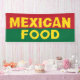 Banner mexicano de comida para vendedor de camiones de comida, festival de comida o letrero de restaurante con los tradicionales colores rojo y verde con brillantes letras amarillas para obtener un diseño brillante.