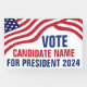 Cartel de candidato a campaña política personalizable con la bandera estadounidense encima de tu texto en rojo, blanco y azul. Añada su elección para presidente u otro cargo político en las elecciones de 2024. Texto personalizado negrita.