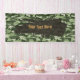 El audaz camuflaje verde hace una fuerte declaración en los juegos deportivos, concentraciones o eventos de espíritu escolar. Personalice con un nombre de equipo, mensaje de estudiante o saludo familiar para cumpleaños, reuniones o graduaciones. Una pancarta versátil que se ajusta a usos divertidos y profesionales.