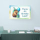 Blue and Green capybara themed boy's Birthday Party personalized banner. A watercolor capybara holding a balloon and birthday gift. Cute for kids of any age!