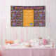 Estandarte personalizado del evento de la empresa Mardi Gras Company con el logotipo de la empresa, la descripción del evento y la información de contacto.