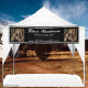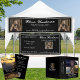 Mostrar a todo el que visita quién es y qué hace, presenta un diseño en blanco y negro con puntos para su nombre/negocio, fotos/logotipos y sitio web en blanco y texto moderno. Ideal para exhibiciones de botellas o carpas en ferias, mercados de granjeros y otros eventos.