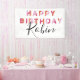 Diga "Feliz cumpleaños" en un estilo audaz y colorido con este banner personalizado que dice "Feliz cumpleaños" en letras rosas, naranjas y magenta coloreadas con tu propio nombre debajo en un estilo moderno de escritura negra. Con su aspecto limpio y moderno, este banner de cumpleaños es perfecto para mujeres o chicas que aman el rosa.