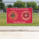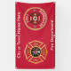 Esta pancarta al aire libre del Personalizado Fireman está decorada con el Departamento de Bomberos y la Cruz de Bomberos de Primer Respondedor, y se puede personalizar con el nombre de la ciudad o ciudad.