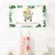 Cartel de cumpleaños "Safari Animals Yellow Balloon Birthday Cute" predominantemente de temática verde y amarillo "safari" masculino banner de cumpleaños con un camión lleno de animales de la jungla, follaje, globo amarillo, flores frangipani.