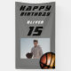 Cartel de cumpleaños feliz de Ball Boy. Banner moderno de la fiesta de cumpleaños del baloncesto para cualquiera que ame el baloncesto. Personaliza tu foto, nombre y edad.