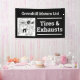 Cartel de mecánica. Venta de neumáticos. Fueron agotadores. Pancarta de garaje. Servicio de coches, neumáticos, agotadores y reparación de vehículos. Blanco y negro.