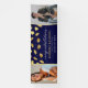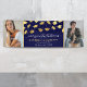 Celebra la graduación con un toque único y moderno. Nuestra pancarta conjunta de la fiesta de graduación cuenta con un sofisticado fondo azul marino que se puede personalizar a cualquier color, con dos fotos de los orgullosos graduados. Está adornado con modas de Relieve metalizado de oro fino con gorros de mortero cayendo en cascada por el cartel, junto con una plantilla de texto fácil de personalizar. Esto no es solamente un estandarte - es un recuerdo de un hito memorable.